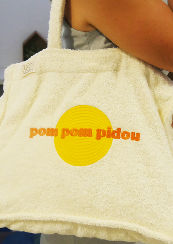 Eponge Couleur Crème / Broderie : Orange et Jaune / Etiquette